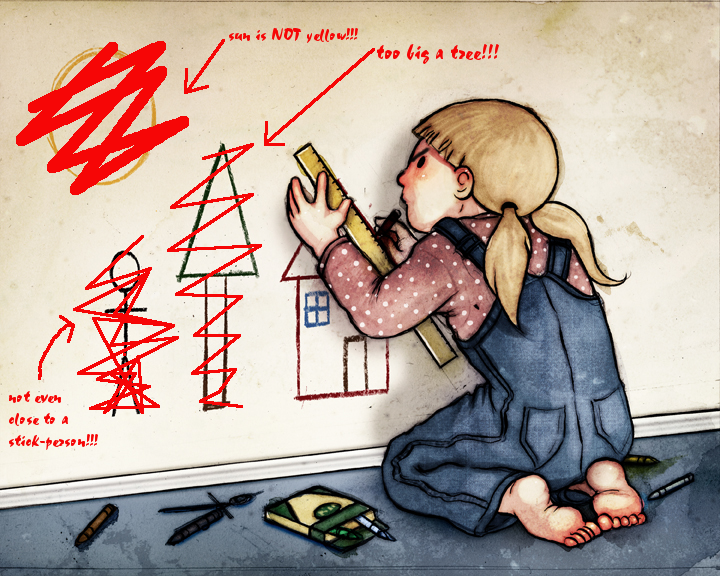 Perfectionism keeps me from trying new things. If I’m not sure I can do well, I’d rather not risk it. It keeps me from hospitality. Since my cooking, my housekeeping, my conversation skills (add your own excuses here) will never be perfect, that level of intimate scrutiny is very difficult. Perfectionism keeps me from doing what’s important, instead I flounder in minutia. Whereas others learn to stop and say, “Good enough,” and scurry away to kith and kin at a respectable time, I find I have no such governor. I will do and re-do until the good becomes best. It’s hard for me to even see “good” when I know that “best” must just be a tweak or two away. Even being aware of this tendency, does not usually help me identify it when I’m in the midst of my work.