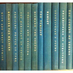 The 2nd collection on my Dream List is the Yale Shakespeare, 40-volume set. I ran across an incomplete set of these beautiful, perfectly-sized books with their pale blue covers and gilt lettering in a local antique store. I continue to enjoy the idea of a complete set adorning my bookshelf, standing at the ready whenever a comedy or a tragedy might be required.