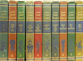 The Harvard Classics collection is a 51-volume set (above) published by P.F. Collier. I suspect Collier modeled his own Collier’s Junior Classics after the Harvard Classics. These beloved Junior Classics (mostly abridged classics) presently stand erect on my bookshelf and bring back good, warm, childhood memories.